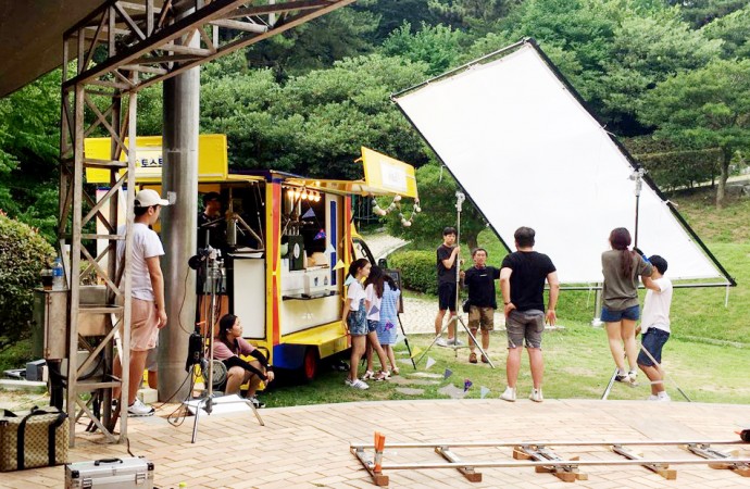 아무튼 프리프로덕션 중에도 사심을 드러내듯 연애하듯 장소를 섭외하다 보니 담당자분들도 그렇게 협조해주셨 던 것 같다. 푸드 트럭을 협찬해준 츄로스토리의 대표님 은 드라마 내용을 좋게 보셨는지 여러 방면으로 도움주셨다. 덕분에 이삭토스트 본부장님과도 인연을 맺어 촬영 기간 내내 이삭토스트 부산동일타워점에서 장소협 찬을 받았고 실무진들 또한 여러 도움을 주셨다. 하지만 폐수영장이라는 장소가 남아 있었다. 부산에 야외 수영 장이면서 폐쇄된 곳은 딱 한 곳밖에 없었다. 사유지이기 도 한 이곳은 많은 제작팀이 섭외를 실패한 곳이기도 하 다. 다행히 팀 내 라인프로듀서가 제작팀 시절 이곳 수 영장 섭외를 진행해본 적이 있었고, 소유주도 그를 기억 해 촬영을 진행할 수 있었다. 사실 제작팀이 촬영을 하 면서 로케이션 담당자에게 좋은 인상을 주기란 여간 까 다로운 일이 아니다. 이렇게 부산 기업 및 대표, 실무진 들의 도움으로 본 드라마는 촬영 전에 로케이션 섭외를 모두 완료했다.