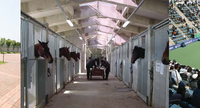 고속도로보다 넓은 경주로 위를 질주하는 경주마의 스피드! 박진감과 스릴이 넘치는 호쾌한 장면은 한국영화에서 보기 드문 명장면을 연출,스크린 위를 화려 하게 수놓을 것으로 예상된다 또한 38만평에 이르는 광활한 대지 위에 온 가족이 함께 하는 가족공원,체육공원을 조성,어린이 승마장,무료 승마강습 생태공원, 야외분수대, 아름다운 호수,야외음악당,인라인스케이트장, 자전거 전용도로, 4계절 꽃밭 등 경기장외에 주변의 다양한 시설들을 갖추고 있어,최상의 영화촬영지로 부각되고 있다. 이어질 ‘금정경륜장’의 경우,경기자체에 있어서는 경마와 경기 방식 등 유사한 부분이 없지 않지만,시설 및 규모에 있어서는 경마장과 확연히 다른 구조를 갖추고 있다. 경륜경수로는 실내경기장을 주요시설로 전 체가 평평하지 않고,경사진 타원형의 붉은 트랙은 내선과 외선으로 구분되어 있다. 금정경륜장의 경우 경수로의 길이는 333.3m에 폭이 9.7m이며, 경사로의 각 도는 3 ~ 34°이다. 실제 경기는 주3회(금,토,일)이며,한달평균 14 ~ 15일 경기가 열리고 있다. 관람석은 6,730석(최대 20,000명 수용)이며,실내체육관, 테 니스경기장, 순환조깅자전거코스, 가족 산책공원, 다목적 잔디광장, 중앙수변공원 등 전체면적 291,190m2(88,085평)위에 완벽한 놀이 및 생활문화시설을 갖추고 있다. 수 년 동안,언제나 변함없이 요구하는 한국영화 주류 로케이션지라면 역시 경찰서,병원,법정 등 어둡고 그늘진 장소들을 빼놓을 수 없지만, 인간이 극복해야 할 다양한 이야기들은 이들 공간뿐만 아니라 좀 더 새로운,이전에 본 적이 없는 이상적이고 스펙터클한 곳에서 찾아내려는 시선도 우리들 모두 간절히 기대하고 있다.